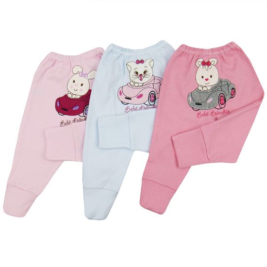 Mijão Bebê Feminino com Pé Reversível Kit com 3 Unidades