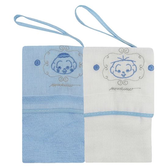 Pano de Boca com Prendedor de Chupeta Masculino Bordado Turma da Mônica Kit com 2 Unidades