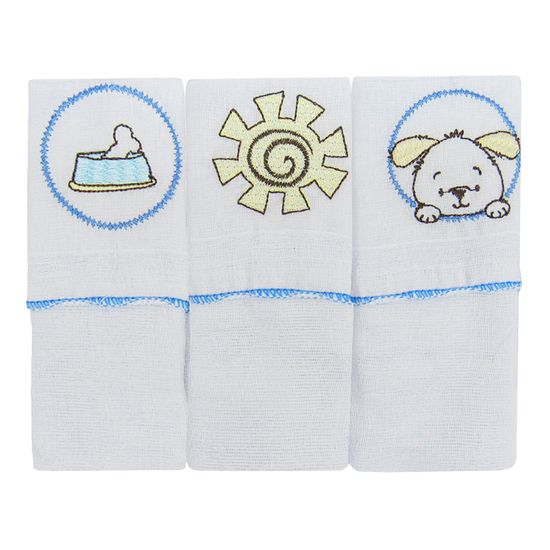 Kit Babete Masculino com 3 Unidades Bordada Cachorrinho, Sol e Ossinho