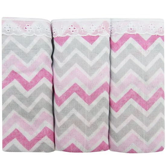 Fralda para Bebê Luxo Chevron Feminina Rosa Kit com 3 Unidades