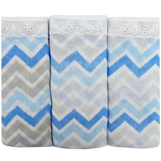 Fralda para Bebê Luxo Chevron Masculina Azul Kit com 3 Unidades